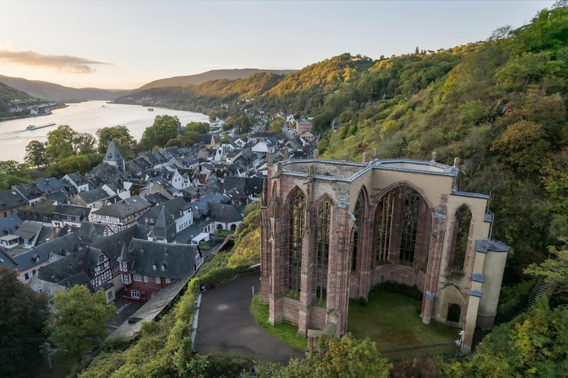 This ruined, High Gothic church standing above the town, appears delicate and filigree. Work began shortly after 1287. It was erected after the murder of a boy called Werner. The Jewish community in Oberwesel were blamed for his death - an accusation which was completly unfounded. During the ensuing riots, forty people were killed. In the wake of this program a chapel was erected in Werner´s memory and people made pilgrimages to the grave of Werner who was buried there. The chapel is a well-known symbol of Rhine Romanticism.