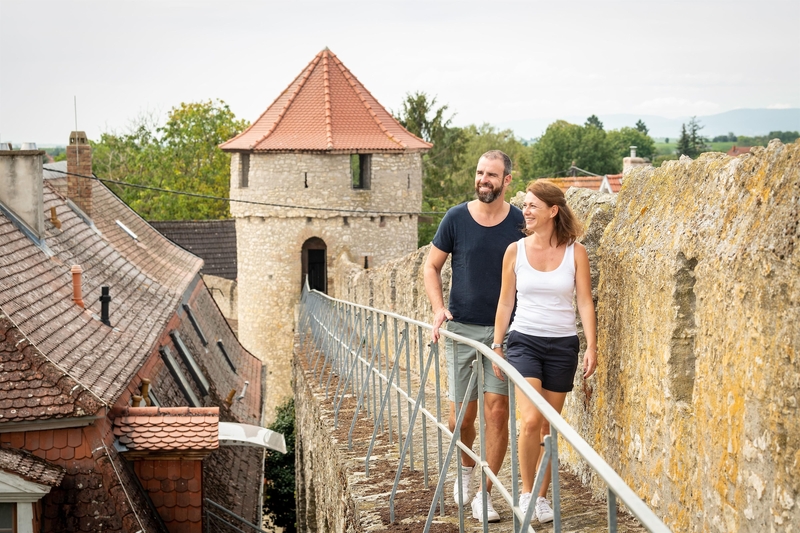 The stain wall is the only preserved medieval local fixation and doesn't has its name because it's dirty or because its structure has a special and diverse pattern. In fact it surrounds the former spot Dalsheim, which was provided really early with the privilege of the marketplace law. The people of Dalsheim got the building lease on the stain wall already in 1395. The 1100 meters long with unhewn limestones that has a highest point of ten meters, still has its seven towers today. Only the two gates were laid down in 1840 and therefore the defense function was ceased. Today the wall can be experienced and walked as a part of guided tours. Beside that there are various theme and special tours over the year concerning the lively history of the constructión.