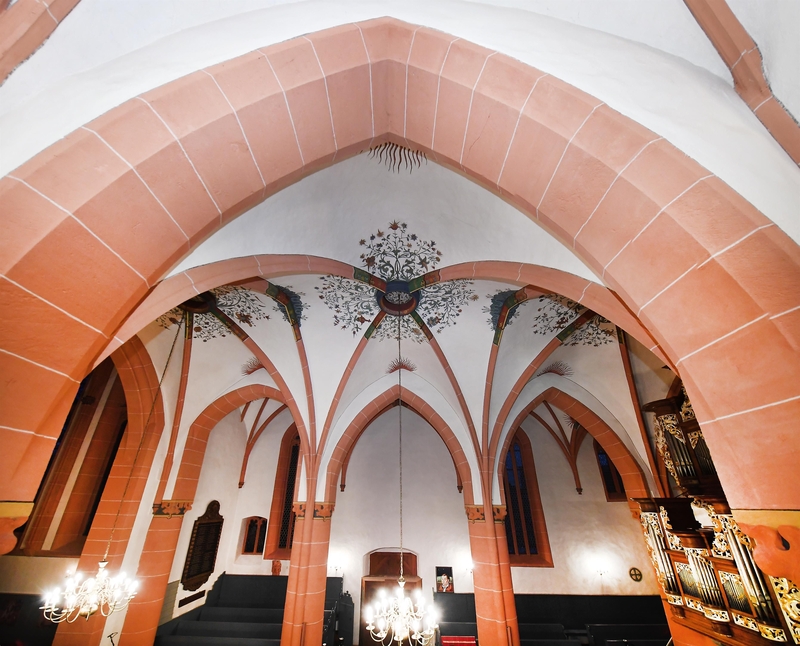 The church has become a symbol of the area. The tower, which is over 60 m high, tells of the importance of the place, which once had city rights. The three-aisled church was built within a short period of time between 1431 and around 1475. Its founders were the last Count of Veldenz and his son-in-law, who established a new line of the Wittelsbach family with the Simmern-Zweibrücken family. The founding plaque (two angels with chalices) placed prominently above the entrance is also a reminder of the pilgrimage to the Holy Blood that flourished in the 15th century. Three different master builders have shaped the building, which blends into a harmonious overall picture. The high, completely windowed chancel, which started with, shows a relationship to Madern Gerthener's buildings. The short, wide nave, which includes parts of the previous building as a stepped hall, points to a Lower Rhine master. The fortress-like tower with an elegant finish next to the city wall is attributed to Nikolaus Eseler (Source: Liebfrauenland - Gothic in Rheinhessen) May to October: Saturday and Sunday from 11 a.m. to 6 p.m. The church key is available from the parish office.