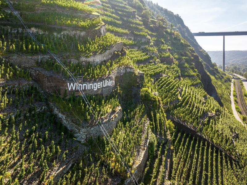 The region is characterized by steep terraced vineyards and is distinguished from the Middle and Upper Moselle by a mostly narrow valley with sometimes high and steep vineyards. Vineyards are often small parcelled, terraced steep slopes. Well known far beyond the Mosel are he Winninger Uhlen and the steepest vineyard in Europe, the Bremmer Calmont. Up to 29 terraces, one above the other, and many kilometers of dry stone walls run through the Uhlen, Hamm, Röttgen and Brückstück vineyards in Winningen. The spanning arches and scissor staircases embedded in the walls are impressive. The cultivation of such extreme steep slopes is a real challenge for the local wineries. The preferred grape variety is Riesling. The slate terraces of the Lower Moselle store the heat and thus allow the cultivation of Riesling white wines of special quality. Usually the work is rewarded with excellent wines. In addition to their cultural and historical significance, the terraced vineyards also provide an important habitat for rare animal species such as the Apollo butterfly and eagle owl. Guided tours and vineyard rides by tractor invite you to explore. Exciting hiking trails lead along and through the vineyards.